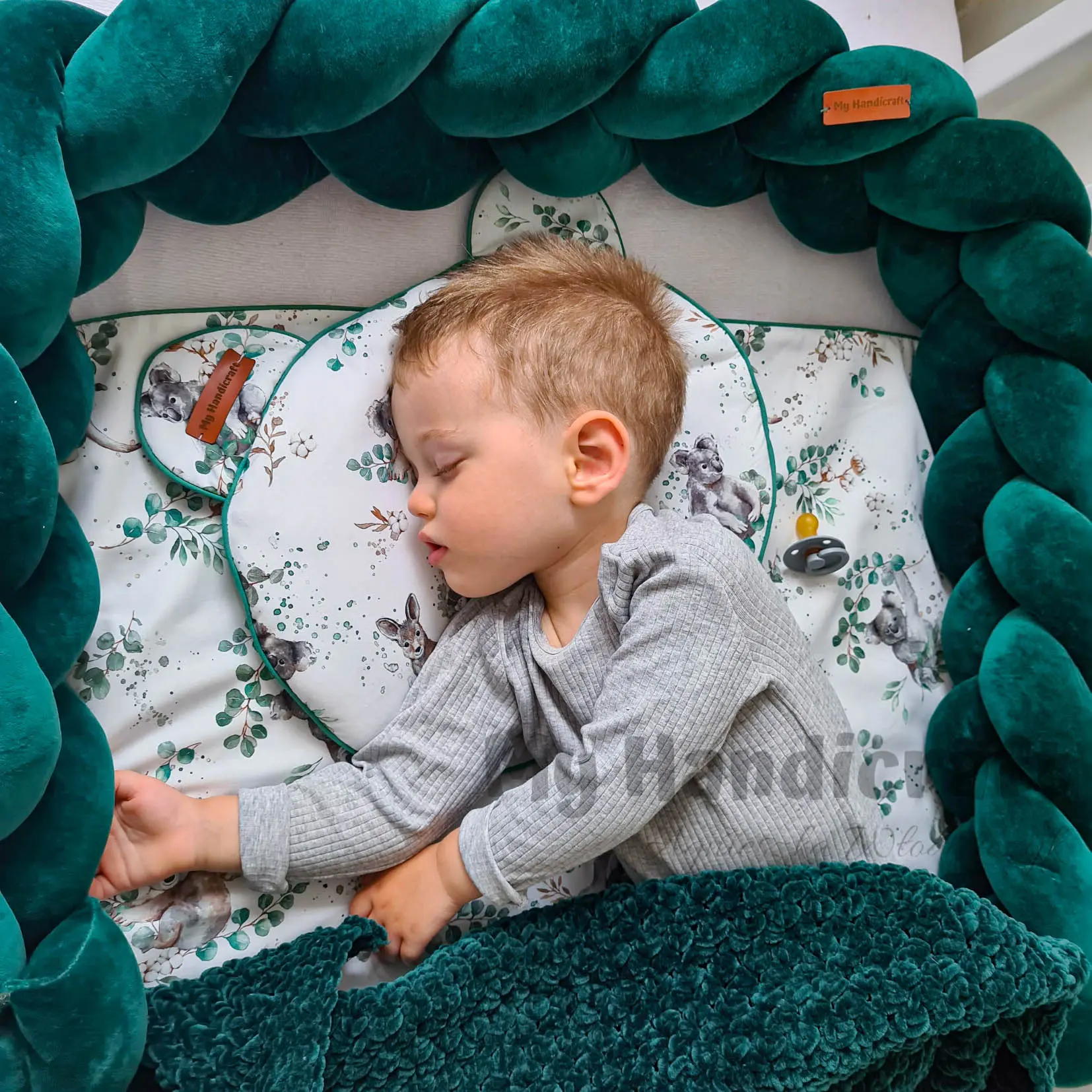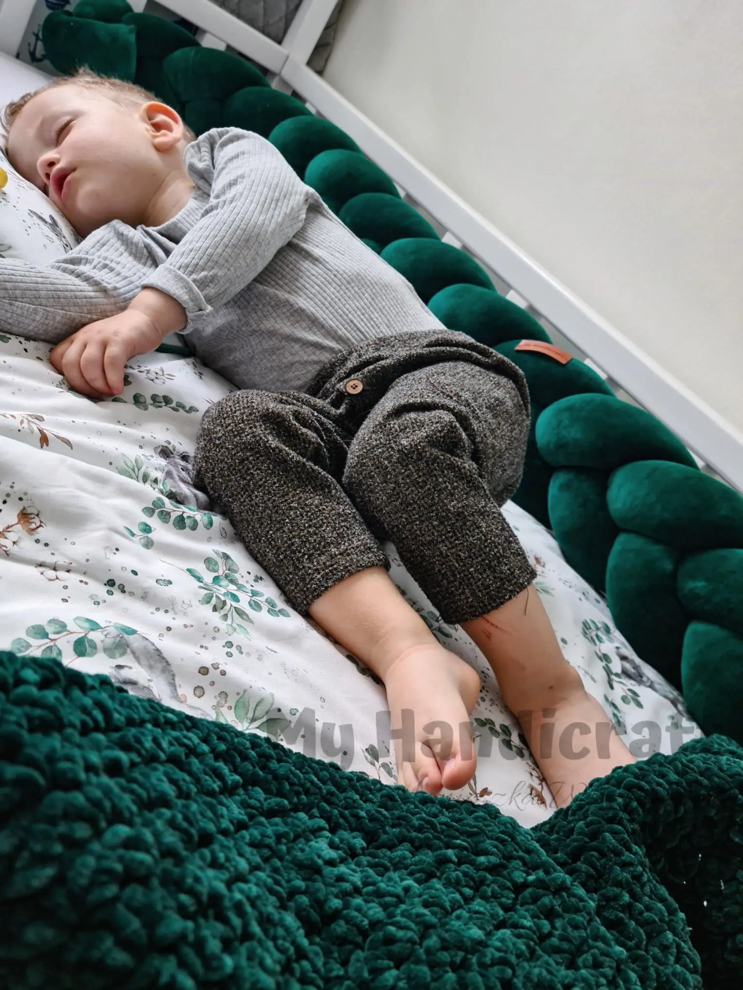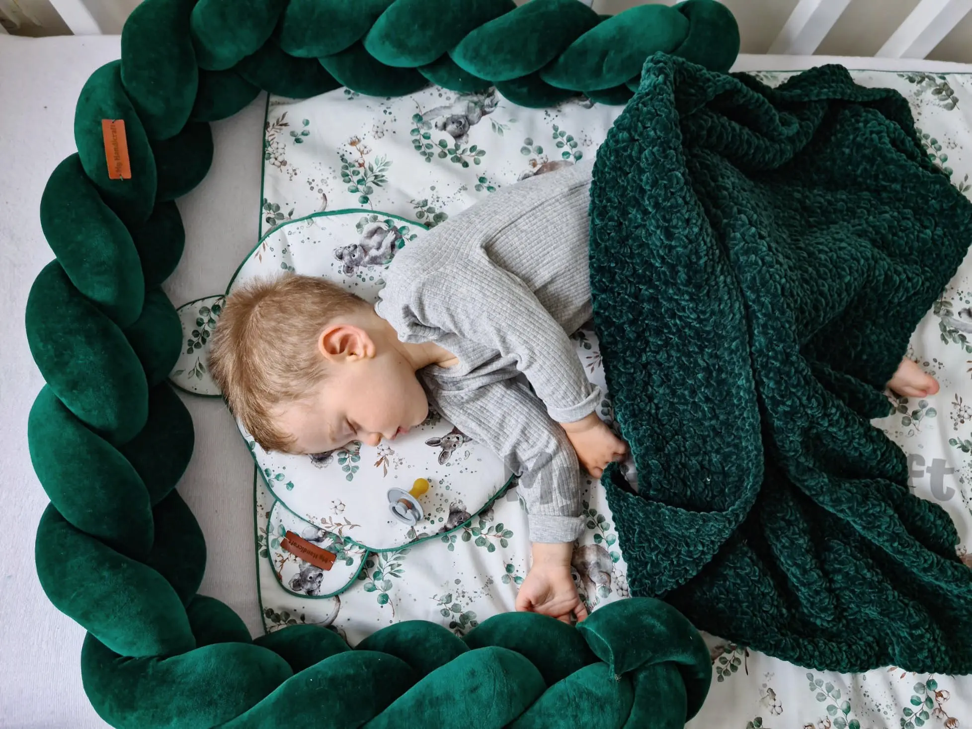 Ochraniacz do łóżeczka warkocz butelkowa zieleń | welur