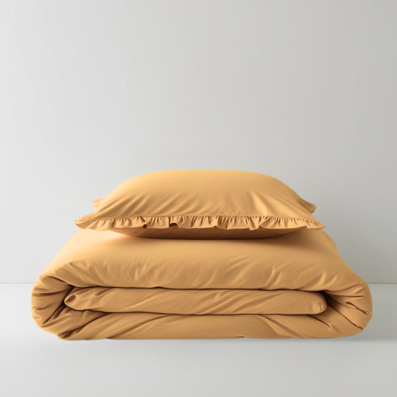 Ciepła musztardowa pościel dla dzieci z falbanką to propozycja dla miłośników nietuzinkowych kolorów. Ożywia wnętrze i doskonale komponuje się z drewnianymi dodatkami. Bawełna 100% zapewnia komfortowy sen.