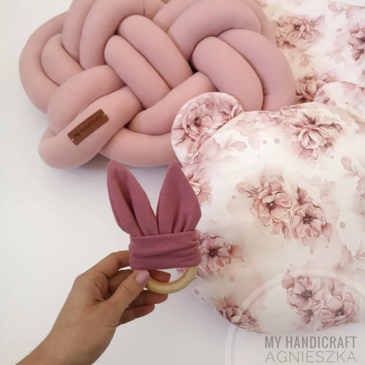 poduszka precel/ poduszka knot/ precel brudny róż