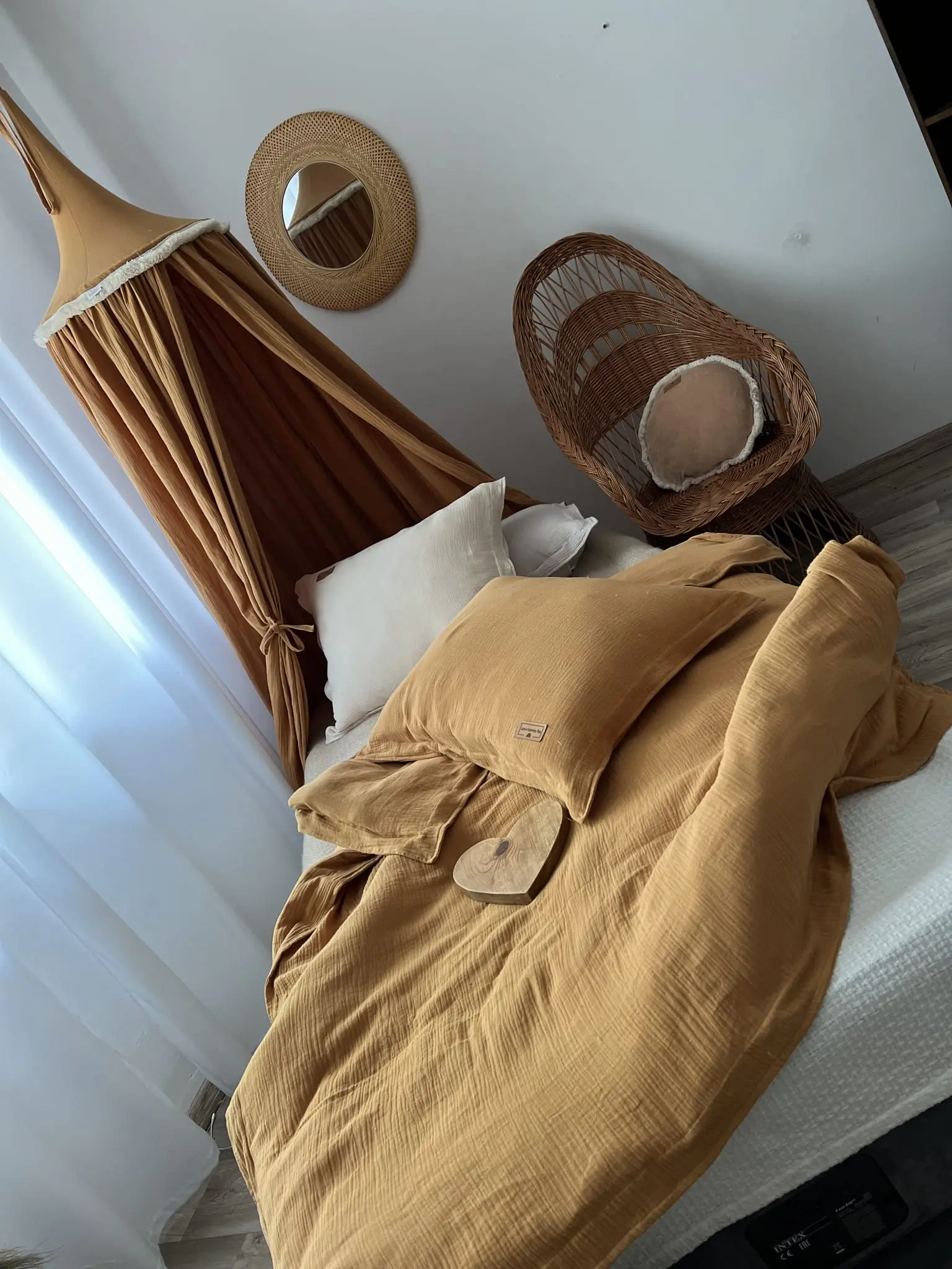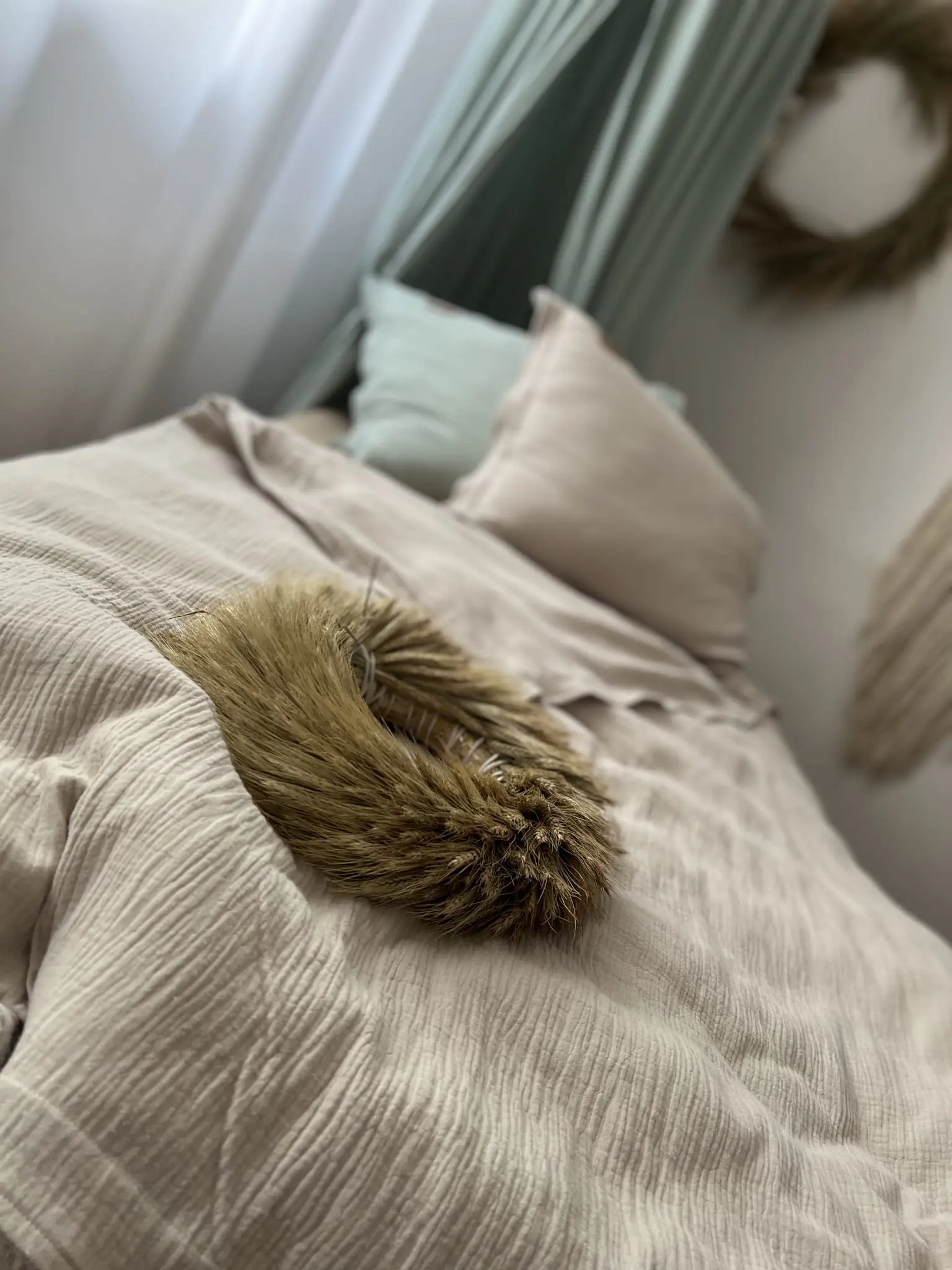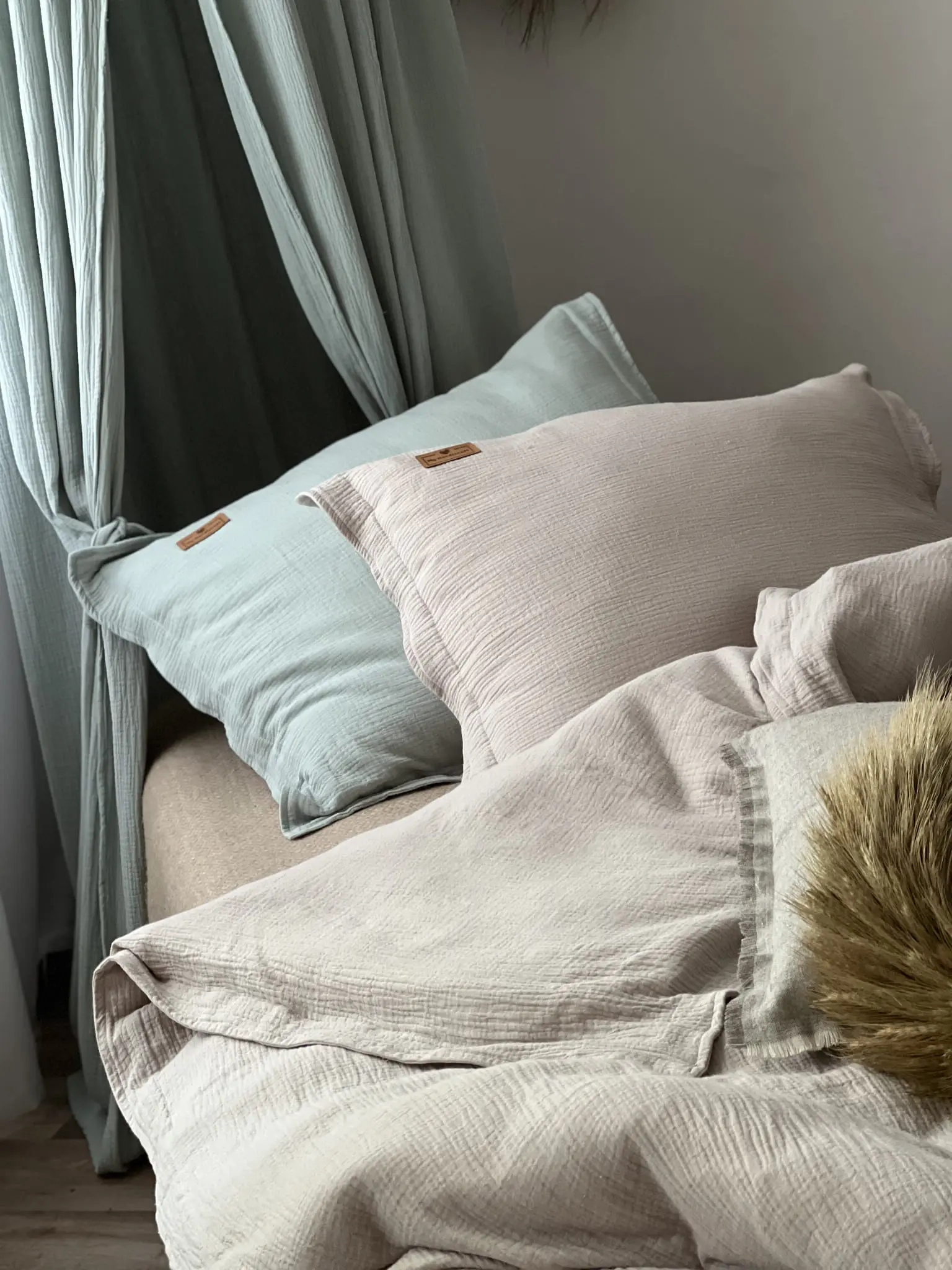 Pościel wykonana jest z certyfikowanego muślinu bawełnianego, posiada on certyfikat Oeko-Tex.