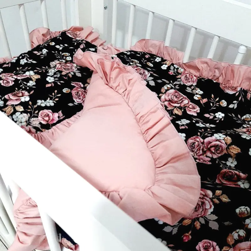 Nasz hitowy wzór składa się z pięknie zaprojektowanego frontu i gładkiego brudnego różu na odwrocie, co czyni pościel uniwersalną i łatwą w dopasowaniu do wystroju pokoju dziecka. Całość ozdobiona jest piękną falbanką, dodającą uroku i elegancji.