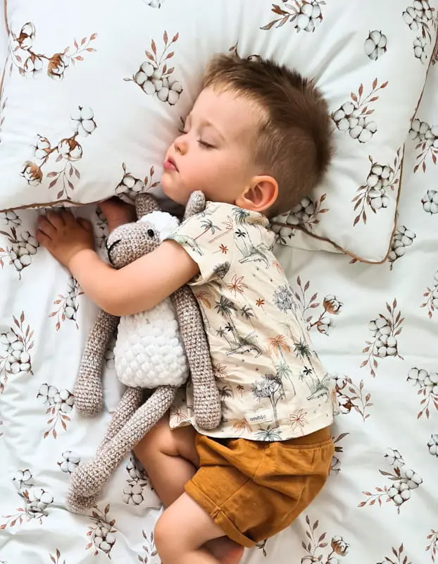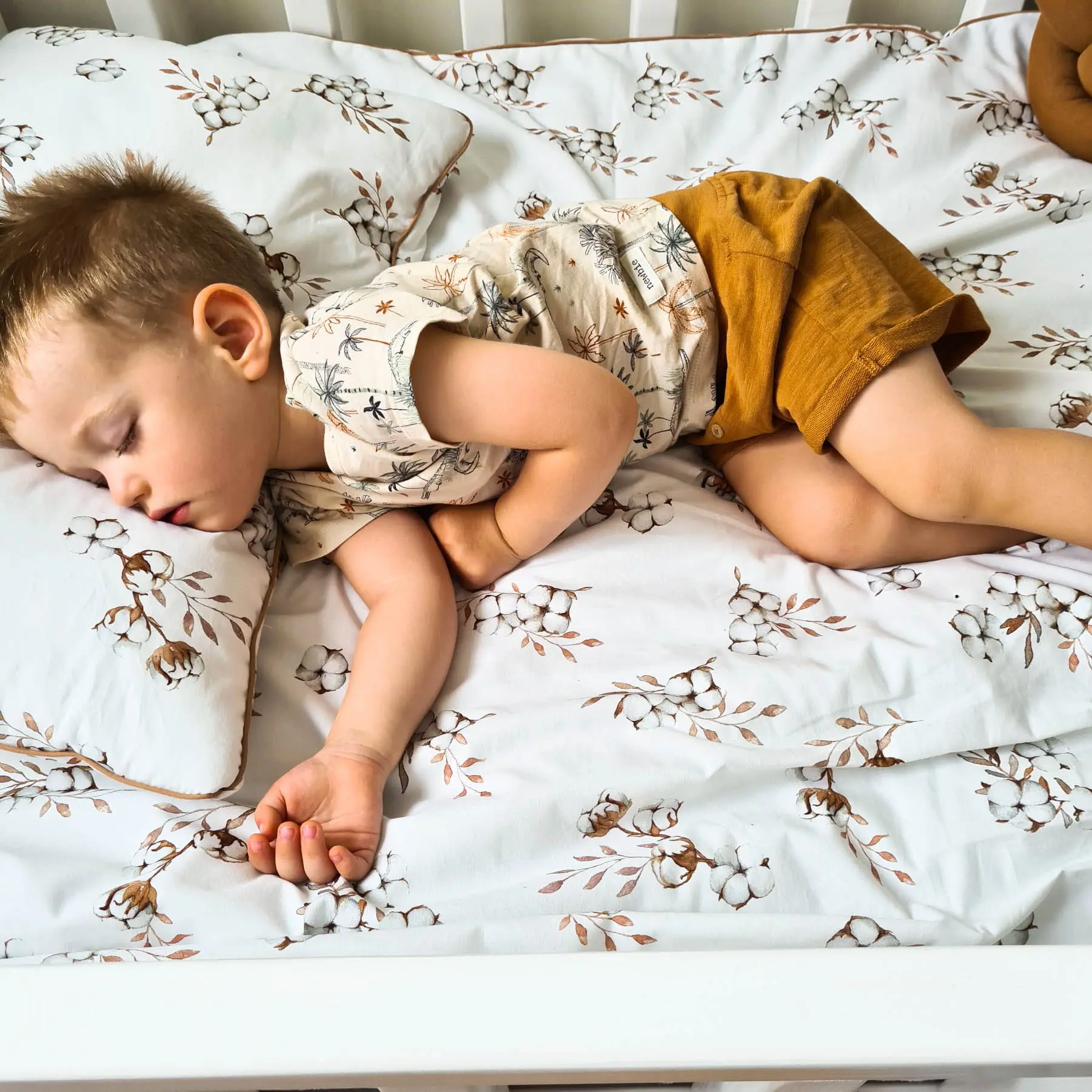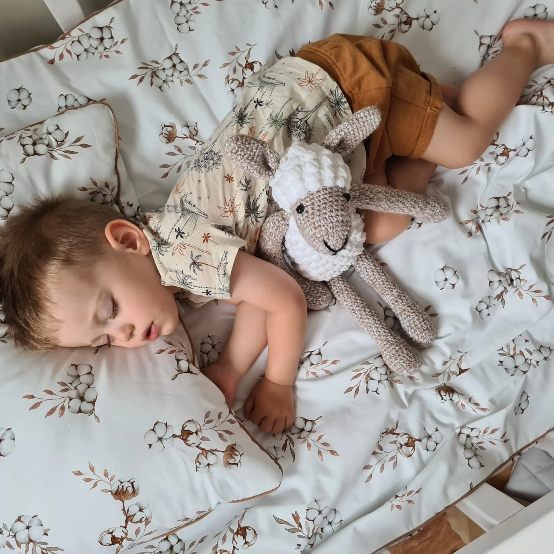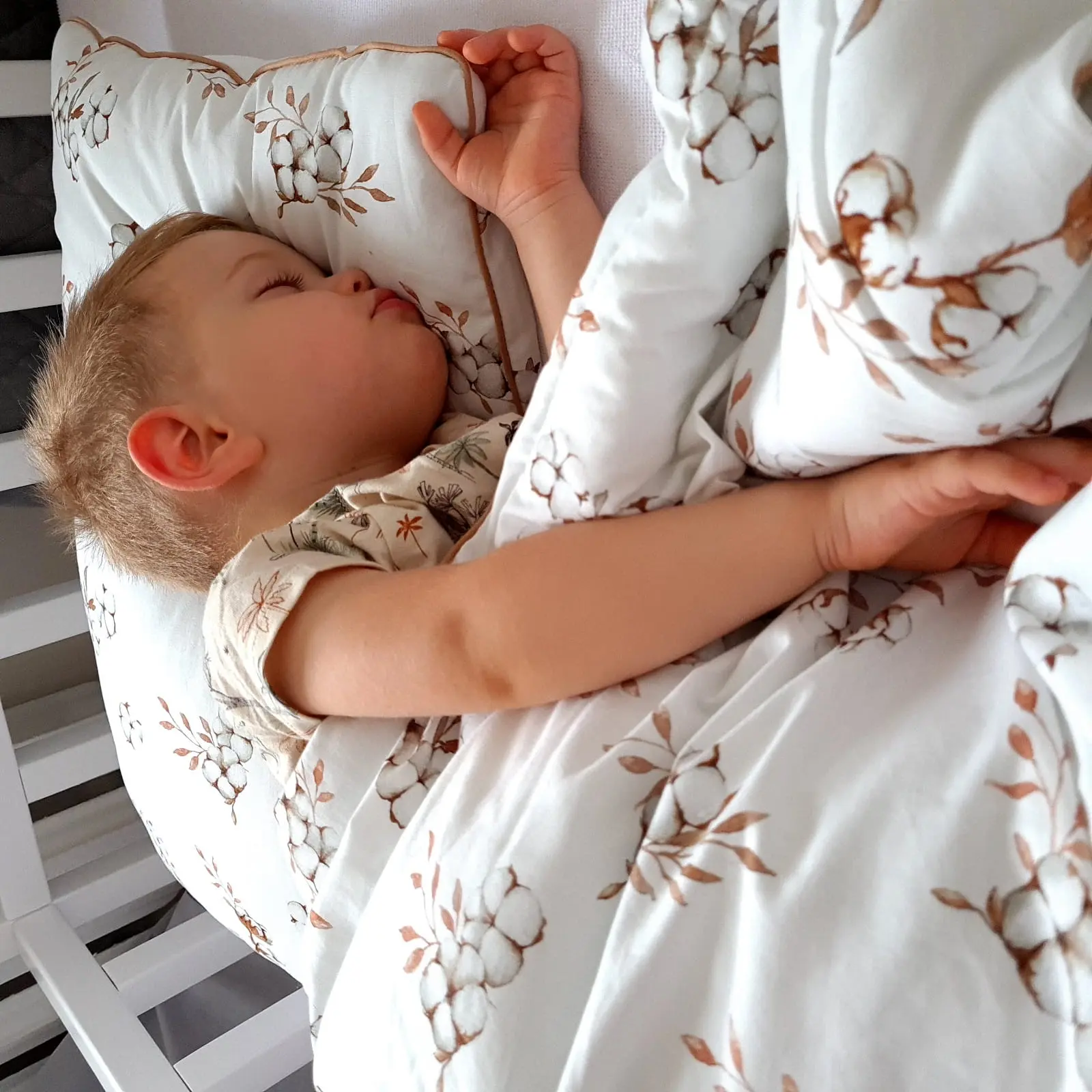 Pościel z wypełnieniem dla dzieci – ręcznie szyta z certyfikowanej bawełny premium. Stałe wszyte wypełnienie z antyalergicznej włókniny silikonowej zapewnia ciepło, komfort i bezpieczeństwo. Idealna dla niemowląt i starszych dzieci.