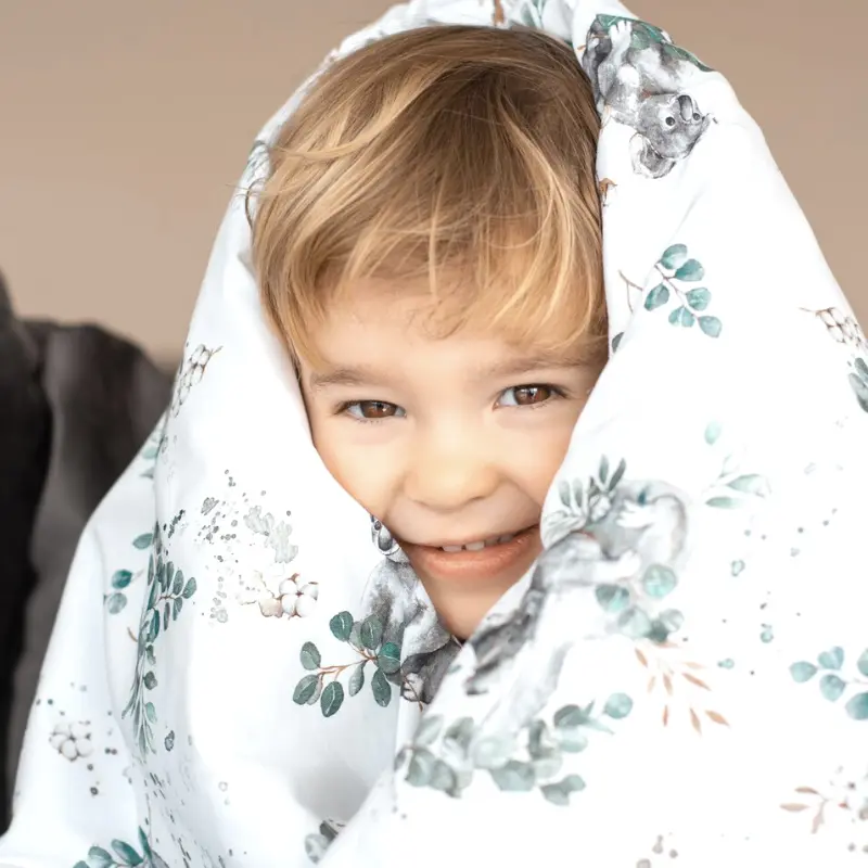 Pościel z wypełnieniem Cotton Australia to idealny wybór dla dzieci, które kochają zwierzęta. Wzór przedstawia egzotyczne koale oraz ukrytego kangurka, co dodaje pościeli uroku i przyciąga uwagę najmłodszych. Nasz produkt został stworzony z myślą o najmłodszych użytkownikach, zapewniając miękkość i komfort podczas snu.