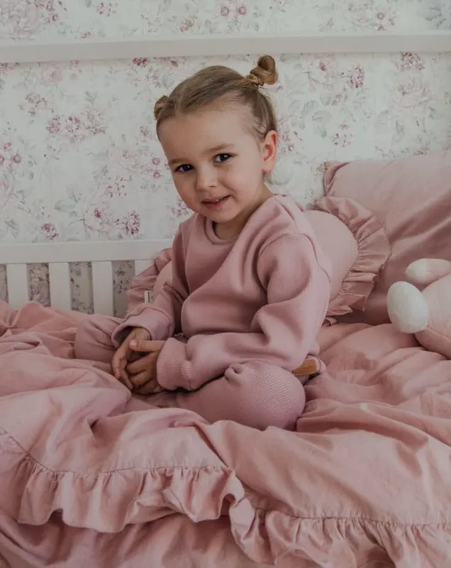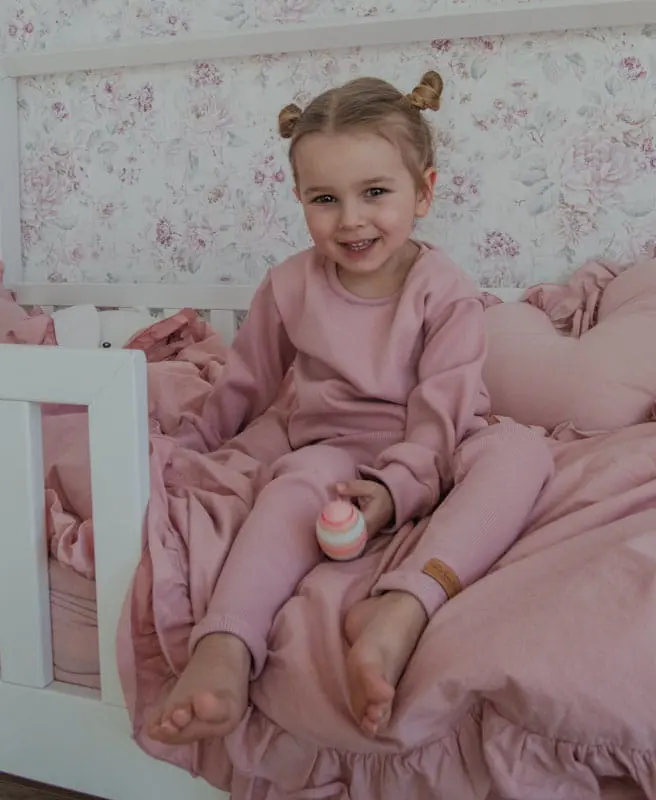 Urocza pościel z wypełnieniem to idealna propozycja dla każdej małej dziewczynki, która marzy o poczuciu się jak prawdziwa księżniczka. Kolor brudnego różu oraz piękna falbanka dodają pościeli delikatności i romantyzmu, a także nadają jej unikatowego charakteru.