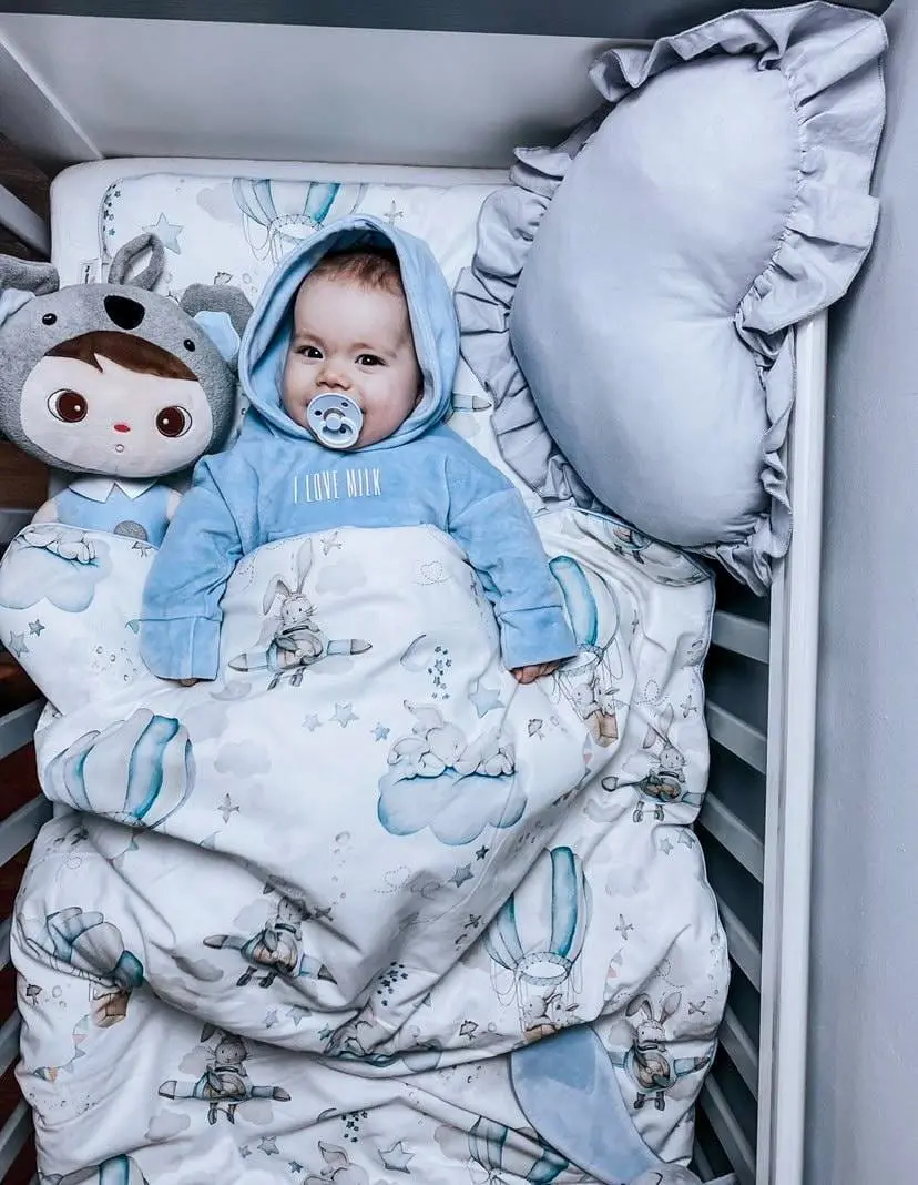 - S- (100 × 75+ płaska poduszka 30 × 20) idealny rozmiar dla niemowlaka, będzie wam służyć do ok. 3 roku życia.