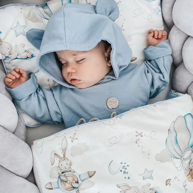 - XS- (80 × 60 cm + płaska poduszka) idealny wymiar dla noworodków, świetnie sprawdzi się do gondoli, kołyski czy kosza mojżesza.